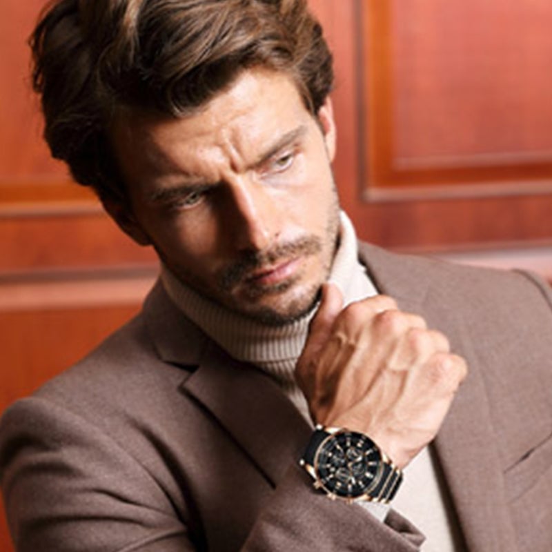 MULTI-FUNCTION CHRONOGRAPH DESIGN: Master time with precision—three subdials track seconds, minutes, and 24-hour formats, while a calendar window keeps dates at a glance. The integrated stopwatch empowers athletes and professionals to time workouts, meetings, or daily tasks effortlessly.